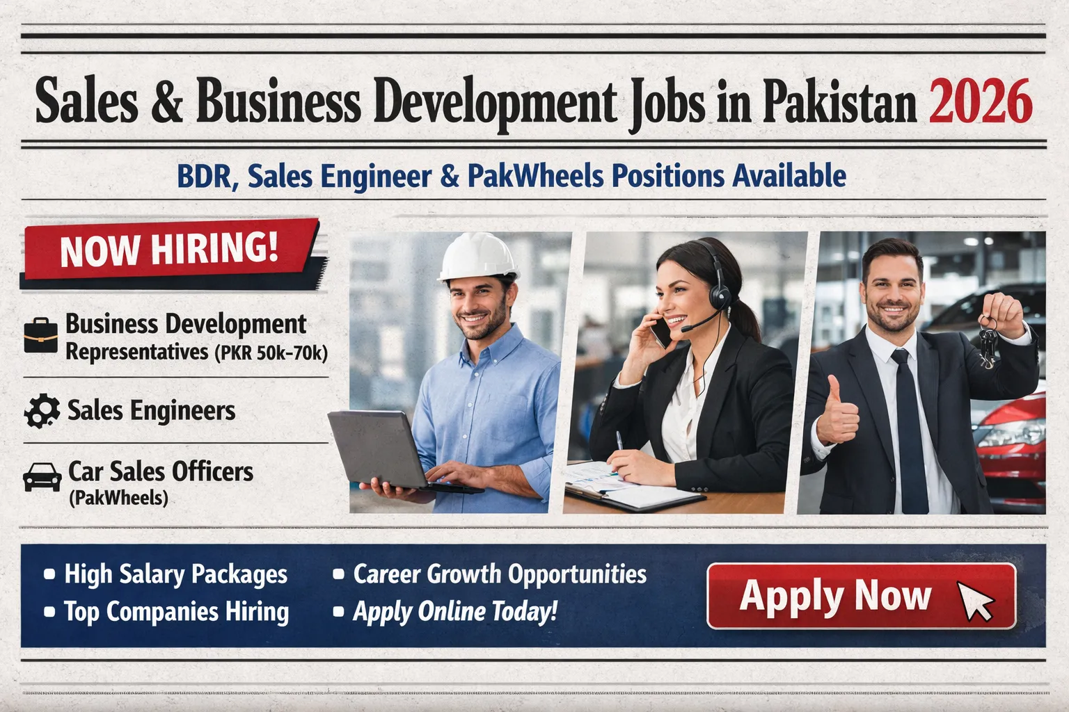 Sales & Business Development Jobs in Pakistan 2026 | BDR, Sales Engineer & PakWheels Jobs Apply for high-paying sales jobs with salaries up to PKR 70,000/month